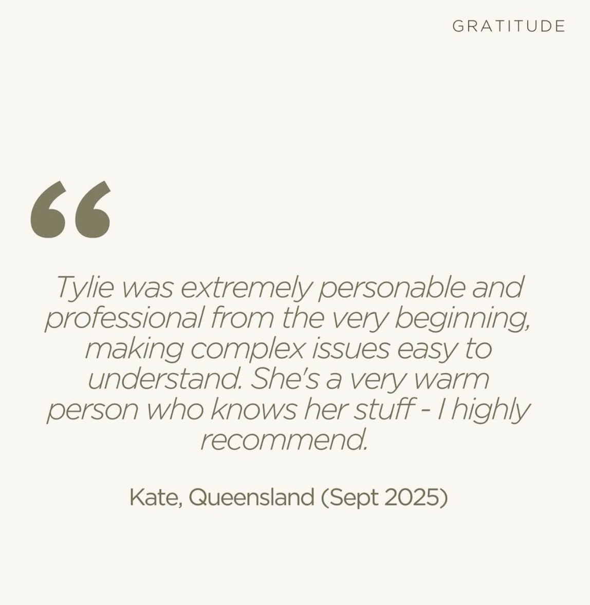“Tylie was extremely personable and professional from the very beginning, making complex issues easy to understand. She’s a very warm person who knows her stuff - I highly recommend.”